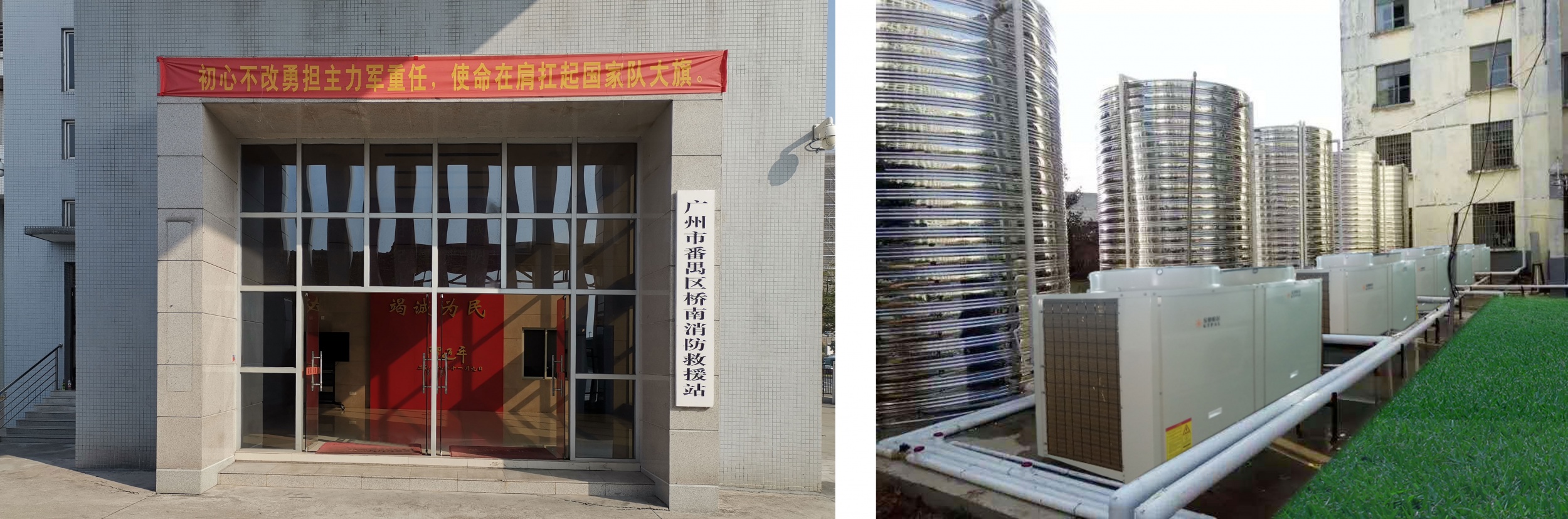 广州番禺桥南消防救援站——10台5匹金地帕尔空气能热泵机组,日产量50吨热水